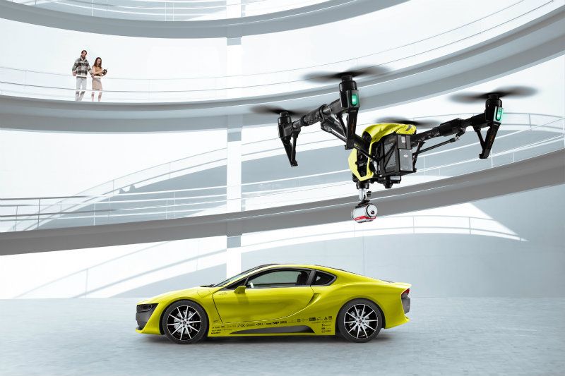 這輛名為Etos的概念超跑無論外觀跟內裝都與BMW i8扯不上邊,Rinspeed將其徹頭徹尾全面改造,唯一相像之處應該只剩低趴的車身還有那兩片鍘刀式車門,車前造型變得更加簡潔圓滑,連頭燈都採用獨家設計。最令人驚豔的是在車尾後方設計一片專供無人飛行器使用的停機坪,另外在車頂還有一塊八角形的Wifi天線,搭配上搶眼的金屬黃車身烤漆,以及表面噴塗陶瓷與金屬混合而成的Borbet GTX鋁合金輪圈,活脫脫像是科幻電影中才會出現的超現代跑車。