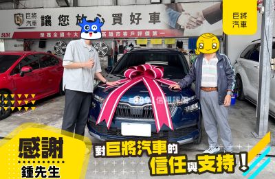 當初在youtube上就有看過巨將的影片,也信任他們的這塊招牌,所以剛好在找車的時候剛好看到他們有販售我的目標車,就二話不說馬上當天約看車,這次整體的購車體驗都很棒,不管是從看車還是談合約到交車,全部的服務都很棒,下次買車也肯定會再回來這裡