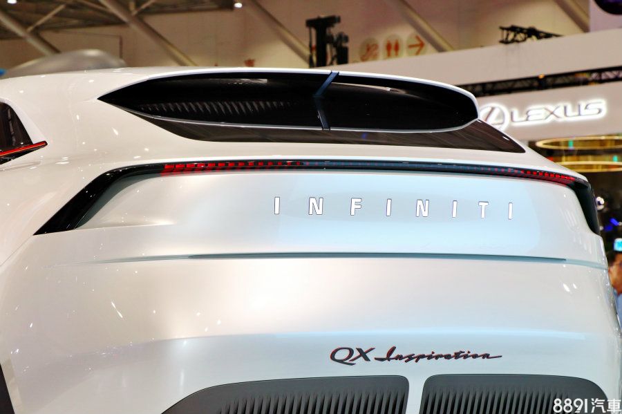 Nissan集團所流行的懸浮式車頂設計,也運用在QX Inspiration上頭,尾部則藉橫貫式尾燈延展車寬視覺感。根據原廠表示,QX Inspiration是輛搭載四驅配置的純電休旅,而多虧於其高容量電池組的設定,將有助增進續航力及整體性能表現。