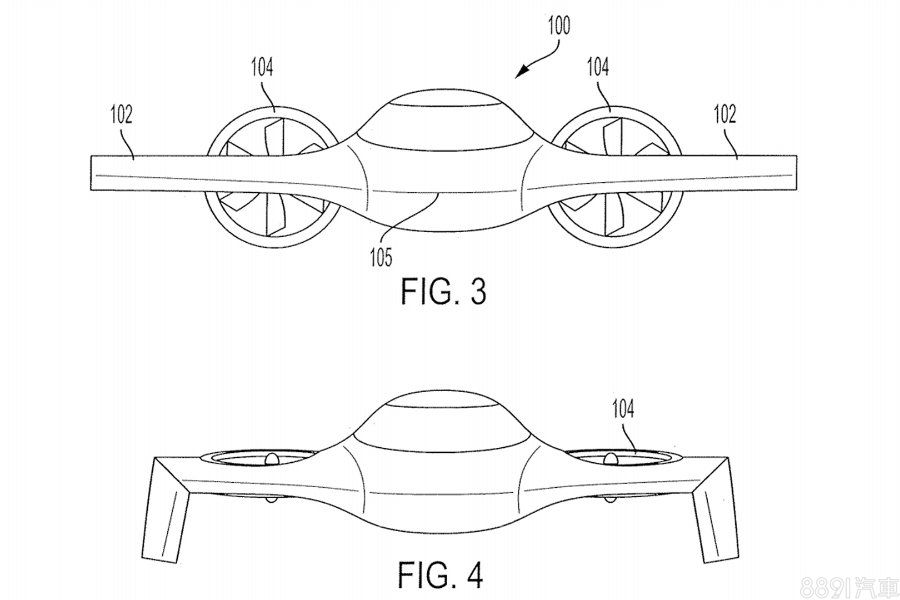從專利圖來看,後方推進器可進行90度翻轉,可切換垂直起降或前進,兩側推進器採固定式,配合摺疊式機翼進行導流,能可輔助垂直起降更趨穩定,但因為只是專利申請,包含機身內部結構與動力規格均未載明。