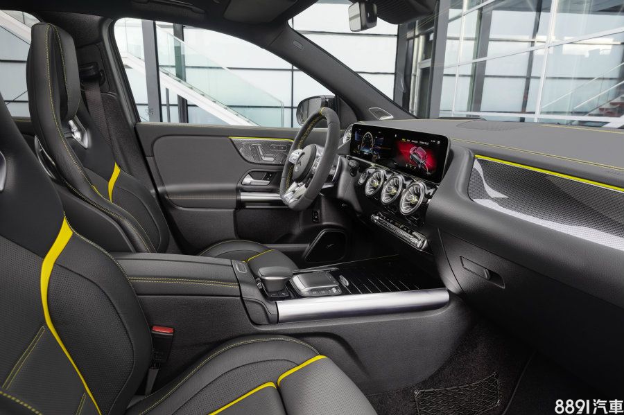 內裝延續GLA的設定,除了標配一體式雙螢幕MBUX車載系統,也當然少不了平底方向盤、金屬踏板及強化側向支撐的跑車座椅等各式運動化裝點。座椅標配人造皮質及細纖維麂皮混搭鋪面,原廠亦提供全皮質座椅或換搭具備鋁合金簍空飾件AMG Performance跑車椅可選。至於AMG Track Pace仍同樣採選配提供。