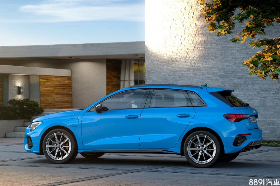 外觀與一般A3無異,LED頭燈將列為標配,日行燈排列成「E」字樣,傳達特殊身分;充電孔則設置於左側前葉子板。另可選配S line外觀套件、電動天窗及電動尾門等。