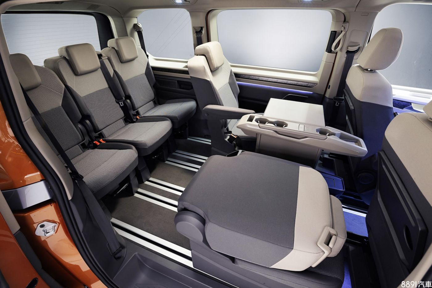 新一代Multivan將採用10.25吋數位儀錶與10吋中控螢幕連結之設計,且較現行採用了更多水平線條,按鍵設置也有所精簡,此外,多媒體系統左側的小型線傳排檔,以及電子手煞車之配置,讓前排空間更有餘裕,前排乘員客能輕易地移動至後方。其他配備還有H/K音響、無線智慧型手機充電裝置,並首度在福斯商旅車上提供抬頭顯示幕可選。