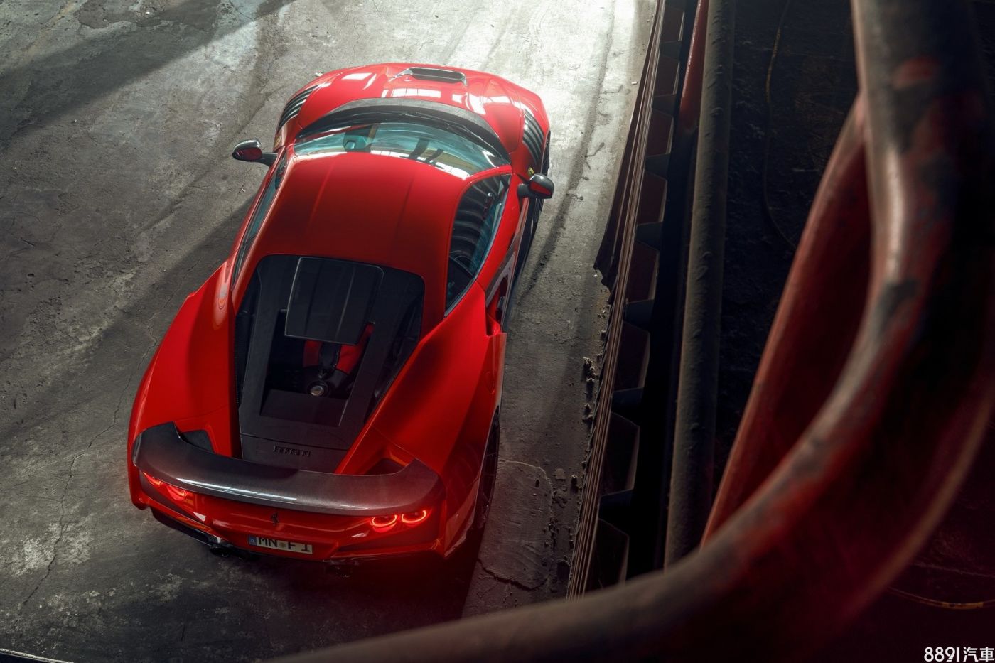 這次針對法拉利F8 Tributo所推出的改裝套件,在設計上同樣不遺餘力,幾乎更換了所有外觀鈑件,取消原本頭燈上的導流孔,保桿、前行李箱蓋、葉子板、後視鏡也全都經過重新設計,全數採碳纖維材質製造,與原廠樣貌有極大不同,化身一部更具侵略性的兇惡超跑。
