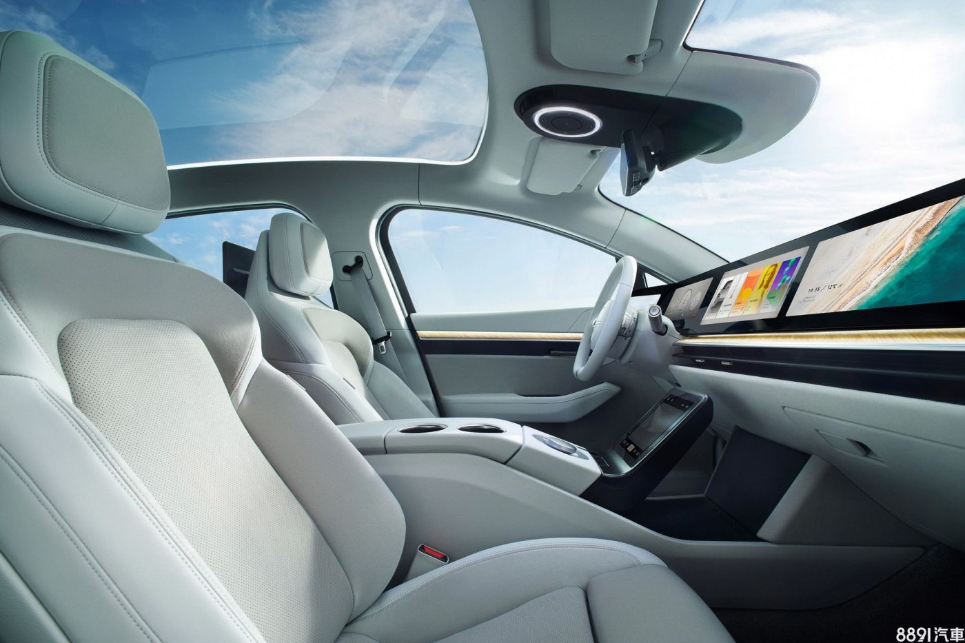 車室亦幾乎與Vision-S如出一轍,搭載橫貫中控的大螢幕,兩邊可顯示車外電子後視鏡的即時影像,另整合儀錶、中控多功能操作介面與多媒體,中央鞍座上亦有觸控式介面設計,屆時預計會提供包含Sony AI智慧助理、聲控、臉部辨識、乘員動作偵測、5G連線、PlayStation遊戲、OTA更新等豐富且多元的車載功能。