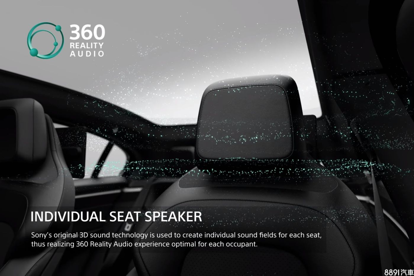 Vision-S、Vision-S 02標榜每位乘客都有獨立大尺寸液晶螢幕,且在每個座椅裏頭都設有音響,音效採用360 Reality Audio技術,強項在於音樂臨場感好,能忠實呈現不同方位的人聲、樂器,更能傳遞作曲者想表達的意境,搭配上Bravia Core的高畫質影片,享受程度堪比家庭劇院。