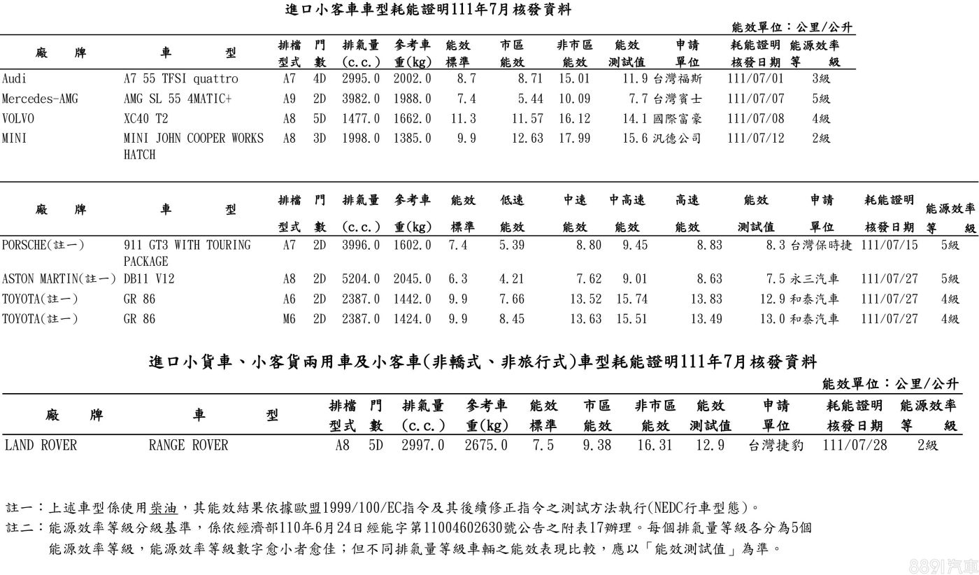 其他於能源局能耗名單上出現的新車,多為新年式,其中款Land Rover Range Rover為大改款柴油車型;電動車方面,則有已展開預售的Mini Cooper SE,以及 M.Benz EQB 300 4Matic,後者採用的是較寬鬆的NEDC測試標準,最大續航里程為460km。