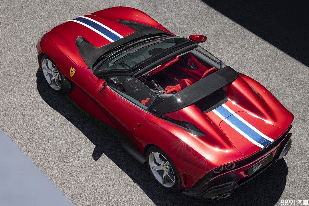除了沒有車頂的造型讓人聯想到採用「Targa」結構的車型,懸浮式橋型設計則優雅地遮蓋了防側翻保護裝置,此為向20世紀60年代早期法拉利Sports Prototype車型所採用的設計理念致敬。