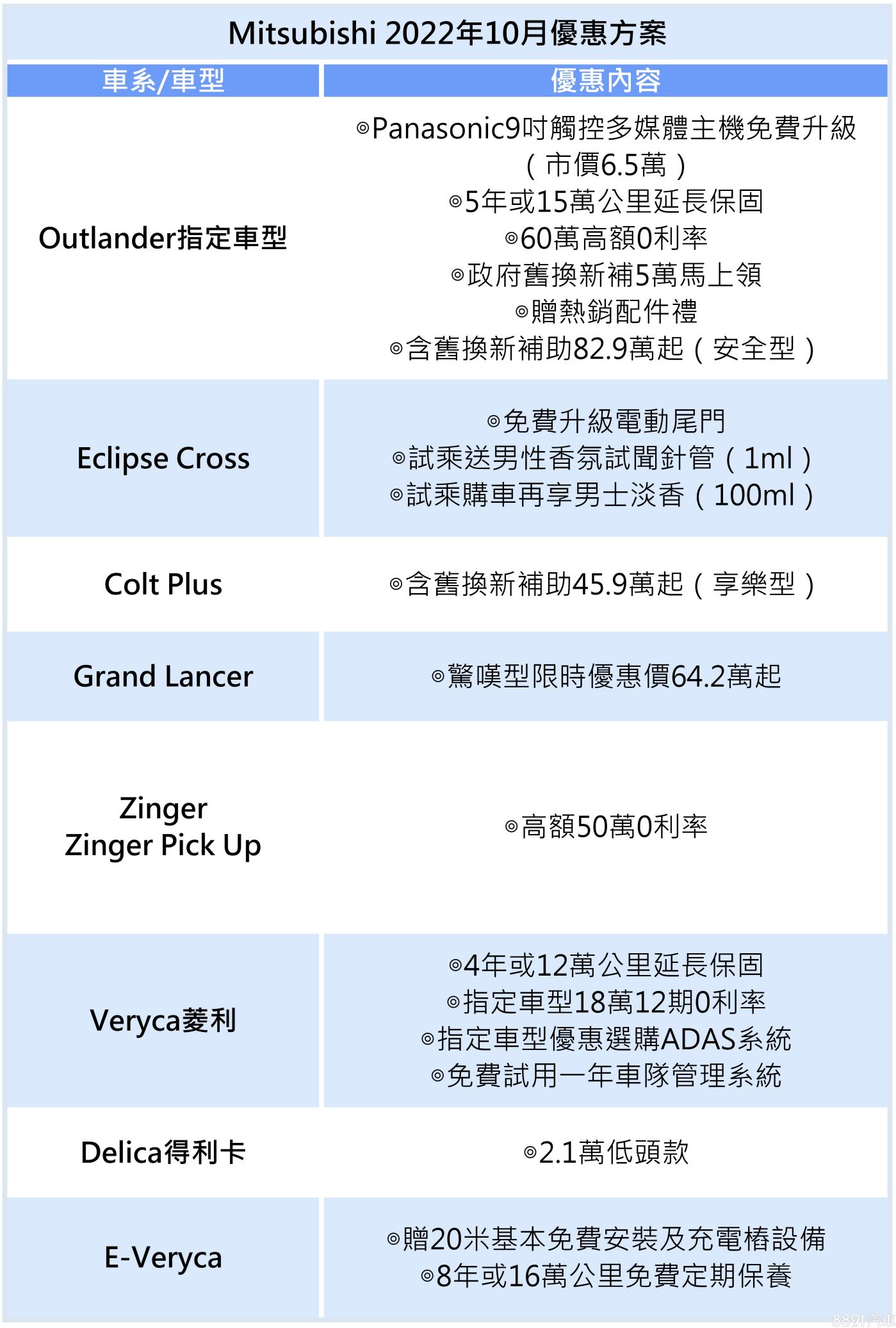 中華三菱本月上網登記預約試乘指定車型,即可獲得7-11 50元電子禮券或迪卡儂數位購物金300元,入主Outlander指定車型、Eclipse Cross享有多樣專屬購車禮,部分車型再推限時優惠價。