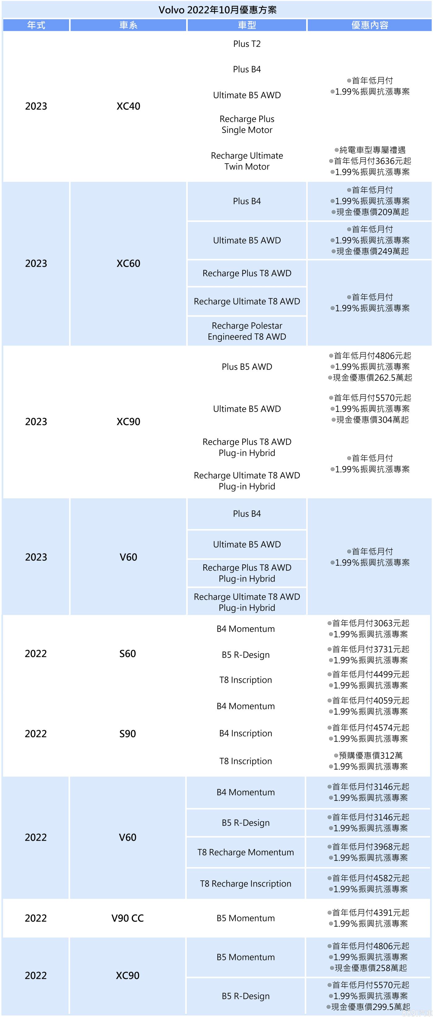Volvo本月持續針對眾多車系推出專屬優惠,可享低頭款輕鬆入主或預購優惠價等,純電車型額外享有專屬禮遇。