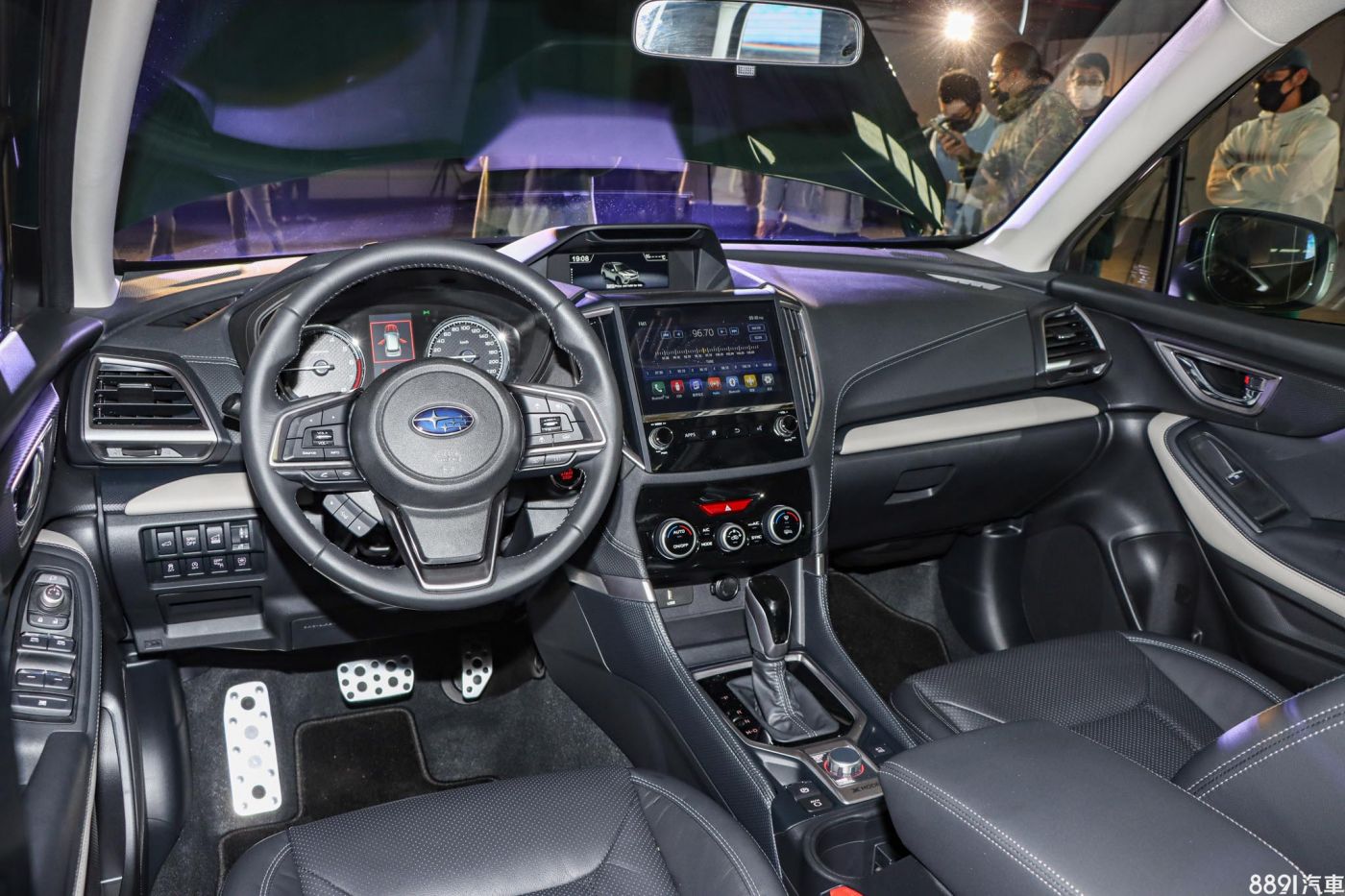 不同於海外版本另搭配有真皮座椅,國內Forester GT Edition內裝配備幾乎與標準版相同,中控台配置6.3吋資訊幕和8吋觸控多媒體系統,支援Apple CarPlay和Android Auto連結。