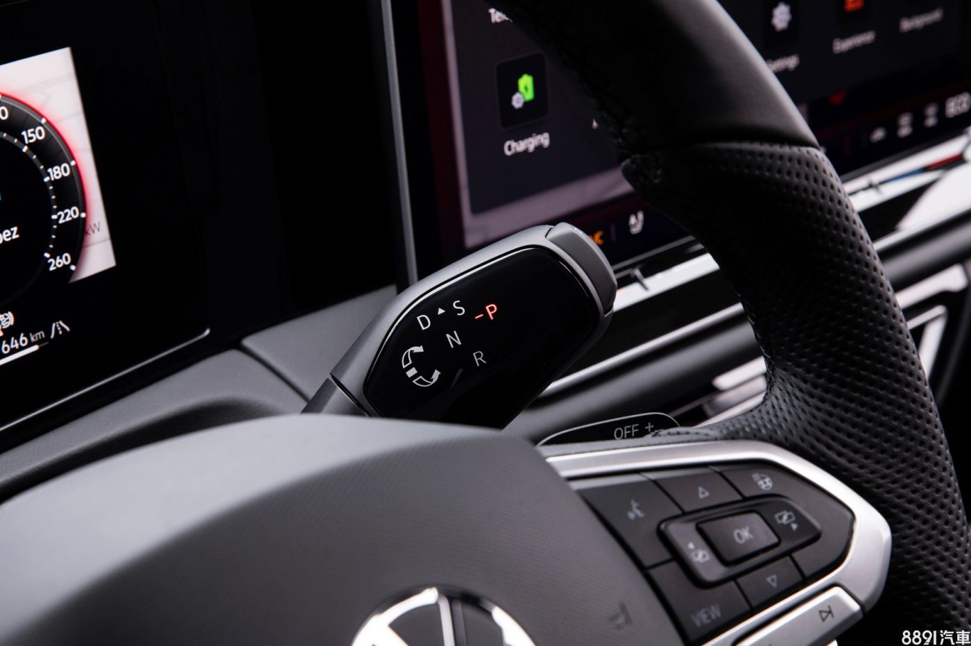 排檔改置於新款方向盤機柱上,用旋轉的方式操作,往前轉是D檔、往後轉是R檔,P檔則是按頂端按鈕。