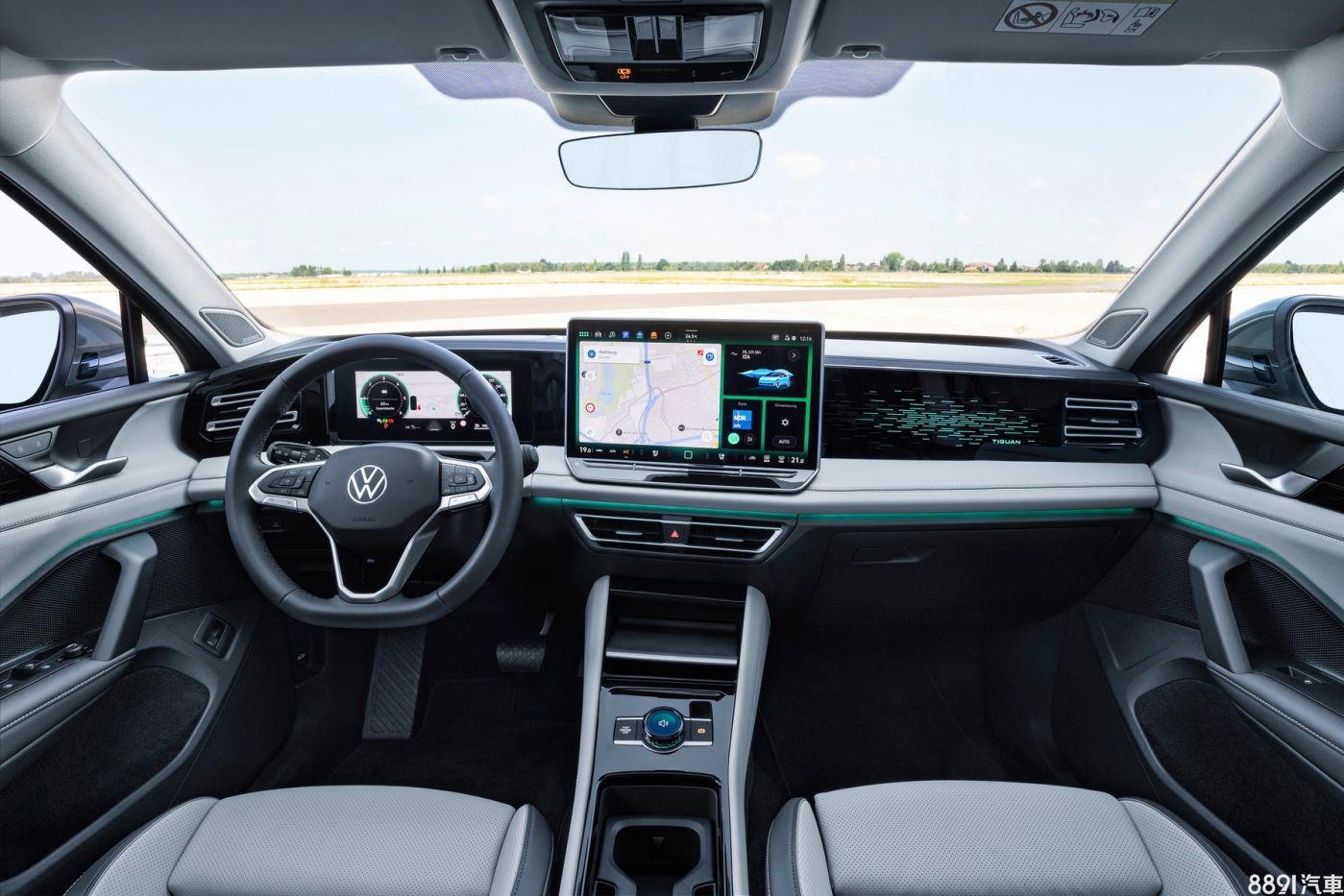 最顯眼的莫過於數位儀錶和中控上方、整合空調介面的橫幅大尺寸螢幕,依車型不同,有12.9吋與15吋兩種尺碼,搭載MIB4介面,支援分割畫面、語音助理和手機無線連結、導航等,螢幕上方為快捷鍵,下方則整合空調、座椅加熱等功能。