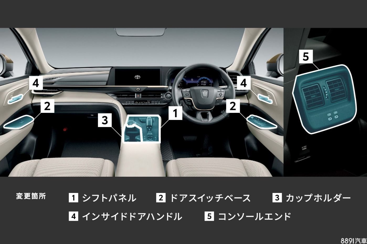 作為套件內容,車門飾板、排檔座飾板、中船杯架和後排出風口飾框,都從霧面塑料換成深灰色亮光處理,車內門把則自霧銀色換成深銅色。官方並預告,上述套件預計12月於日本市場開賣,但目前尚未有在海外市場供應的規劃。