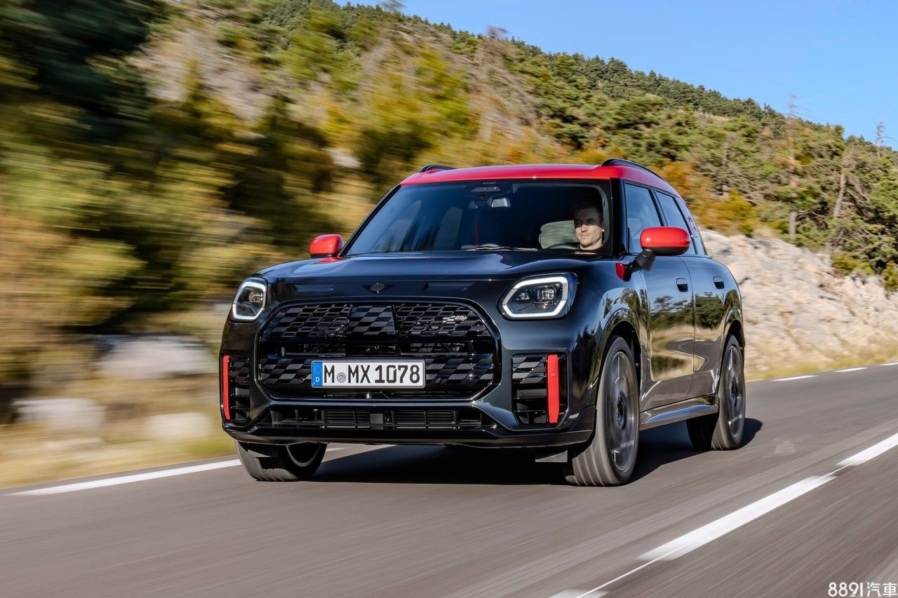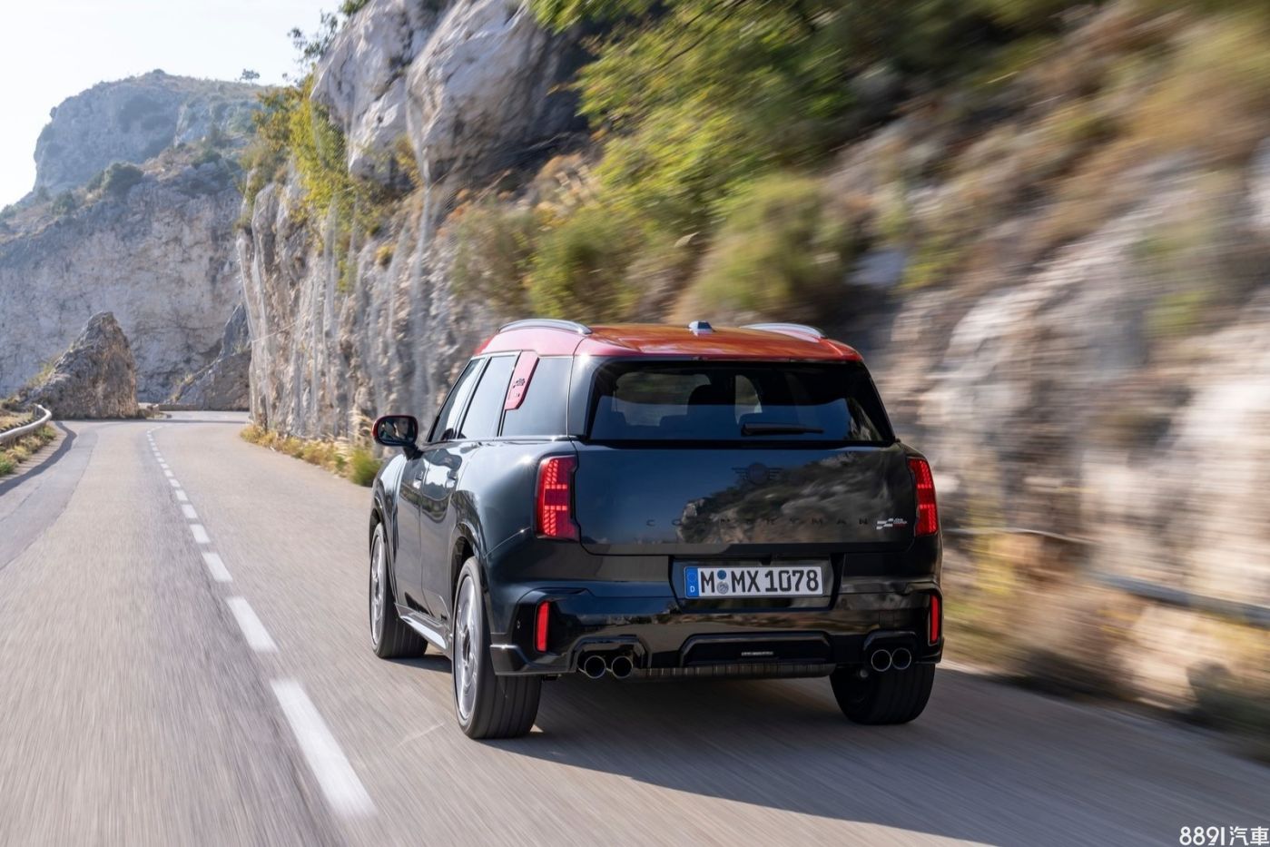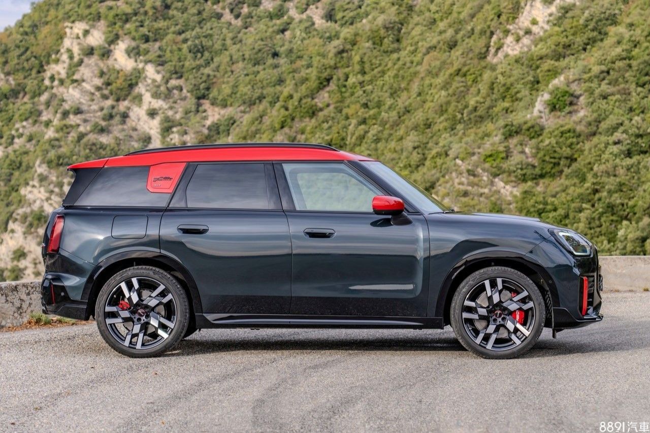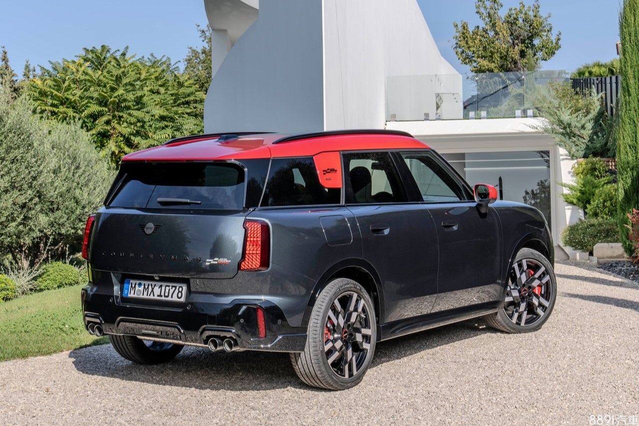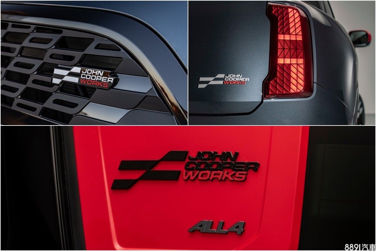 新款JCW Countryman延續紅色車頂、後視鏡蓋及煞車卡鉗的配置,讓人一眼就能辨識是性能版!而全新設計的C柱飾板與懸浮式車頂形成鮮明對比,視覺特色不少。