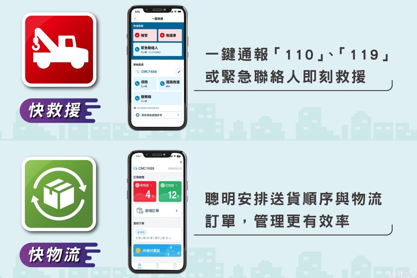 若遭遇緊急狀況,也可透過APP通報警護或道路救援,且偵測到氣囊起爆後,系統也會自動通知緊急連絡人。此外,考量多數車主有物流需求,APP也提供訂單管理與路線安排功能,方便車主送貨使用。