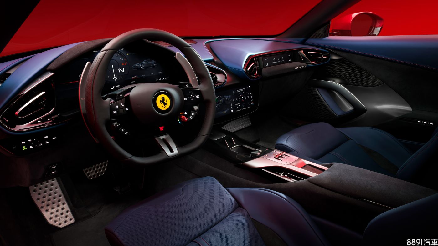 內裝採用Ferrari新式代家族設計,在Roma、Purosangue都能看到類似鋪陳,以15.6吋儀錶、10.25吋中央螢幕、8.8吋副駕螢幕構成數位化座艙,電容觸控式方向盤上頭也有各式模式旋鈕,讓駕駛快速調整車輛動態。