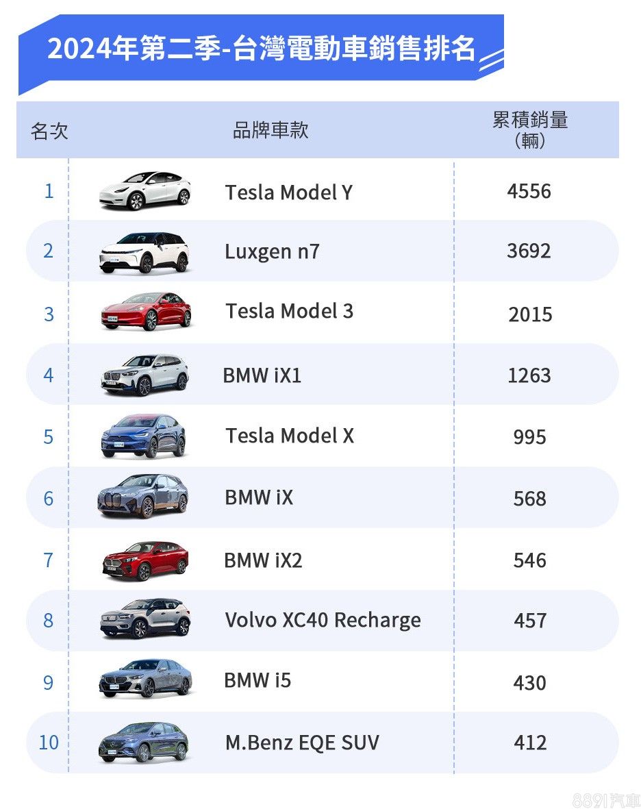 BMW也是榜中常客,iX1、iX2兩兄弟共交出729輛,分居第四、第五名,中大型房車i5也賣出141輛,位列第七。