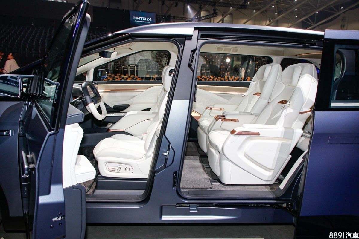 由於仍是概念身分,現場有限制拍攝,只能透過部分照片或簡報讓大家略知一二,軸距達3200mm的Model D,最多提供7座(2+2+3)配置,二排雙獨立座椅支援電調、腿靠、仰躺等功能。