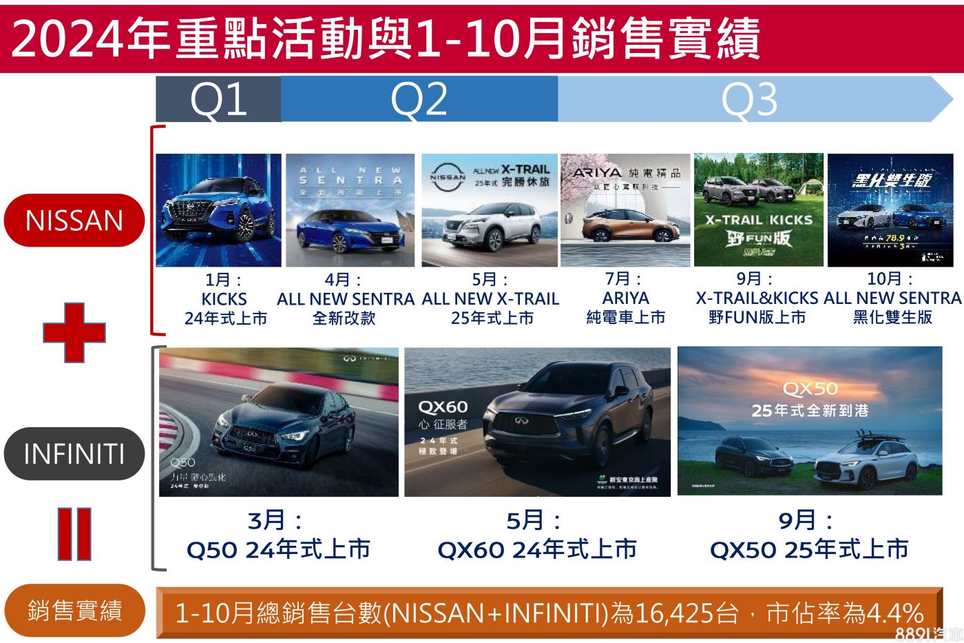 在台灣銷售Nissan和Infiniti兩品牌的裕隆日產汽車(裕日車),於稍早舉辦法人說明會,並在會中總結今年1~10月營運表現與未來展望,指出該段期間內合計繳出逾1.6萬輛掛牌數,拿下約4.4%市占率。