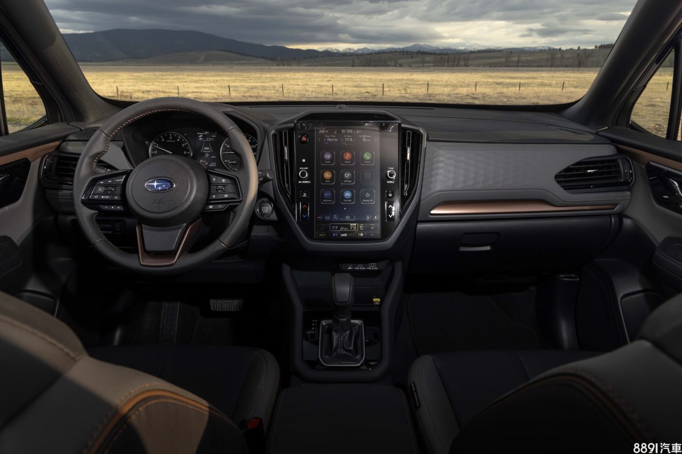 內裝格局跟進Crosstrek、WRX等新世代家族設計,主要以水平線條堆疊出層次感,中央搭配一具11.6吋直立觸控多媒體系統,空調介面整合其中,並支援手機無線連接功能。