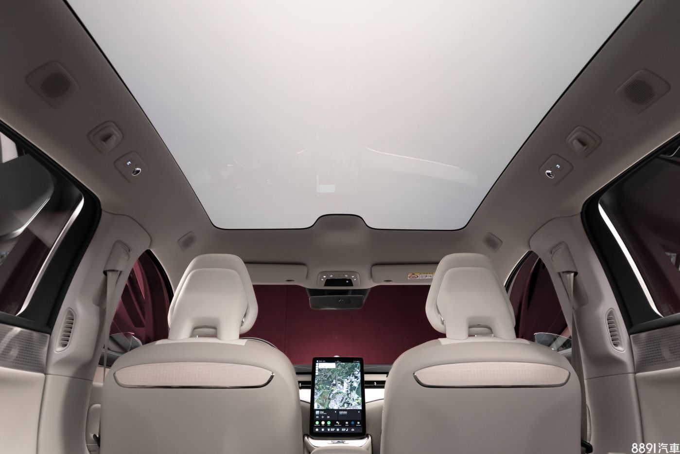 ES90配備全景式玻璃車頂,面積一路涵蓋到後排乘客的頭頂位置,能增加車內採光與視野開闊度,原廠稱天窗具備99.9%的紫外線防護,並提供電致變色玻璃可選,一鍵就可調節透光度。