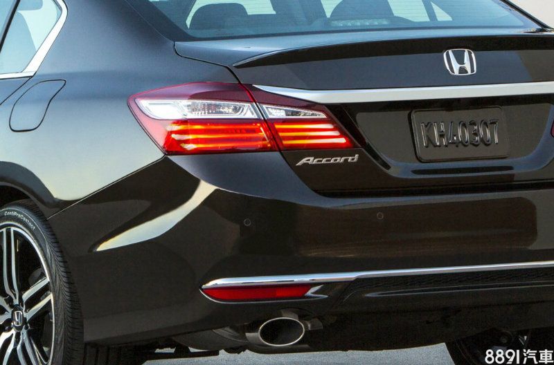 2016年式Accord的轎車與雙門跑車款在車體線條部分修飾的更加動感,前、後保桿透過銳利複雜的折線設計營造出更俐落的外觀造型,並將LED日行燈融入保桿進氣側,且無論是轎車款或是雙門跑車款皆升級為19吋鋁合金輪圈,另外旅行車款增添新的運動化尾翼。