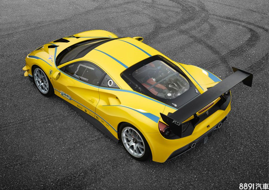 在外觀上,原廠也充分以空氣力學效益為設計重點,首先是強化前保桿下擾流造型,而前車蓋上的散熱孔、前保桿兩側的定風翼、前進氣壩、後葉子板散熱孔、後下分流器等也都經過重新設計,車尾的大型尾翼則加入488 GTE的設計要素,據原廠表示,與前代458 Challenge Evo賽車相比,488 Challenge在高速時的下壓力增強了7%左右,尾翼的空氣力學效益則強化了9%之多。