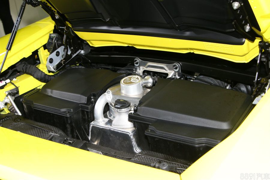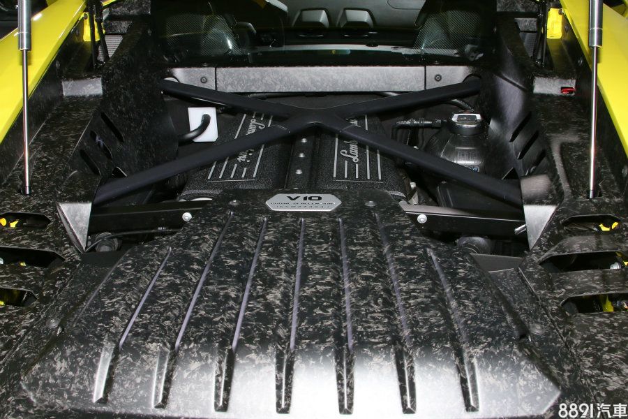 雖然與Huracan RWD Coupe硬頂車款搭載為同一顆引擎,不過敞篷車型多了電動軟頂組件,重量小漲120kg(車重為1509kg),在0~100/h加速上,比起硬頂版本的3.4秒,敞篷款小滑至3.6秒完成,另外加上因應敞篷設計,車頂線條必須有所修改,固Huracan RWD Spyder引擎室也重新設計過,未能完整看到V10引擎字樣。(上圖為硬頂款引擎,下圖為敞篷款。)