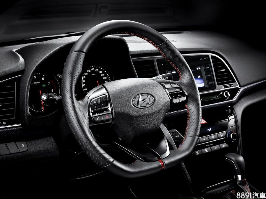 外觀具備專屬的空力設計,車頭採亮黑色水箱罩,上頭有「Turbo」銘牌以表身分,頭燈為HID光源,車尾則是單邊雙出的尾管以及下方的分流器造型,雖沒有尾翼配置,但已經有效營造跑格視覺,能和一般Elantra的溫文氣質區隔。至於車色提供烈焰紅、極速黃、海洋藍、極速白以及金屬灰共五種選擇。