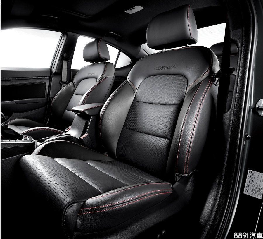 一樣採紅色車縫線的前座椅,腰部強化側向包覆性,中央有打孔的透氣處理,另外在椅背上端也有「Sport」字樣。