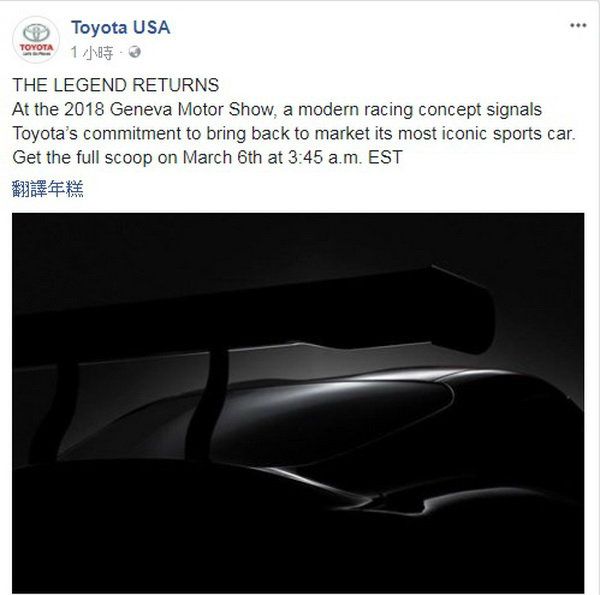 美國豐田在釋出預告圖時也同步表示,即將在日內瓦車展現身的神祕車款,會是將品牌最具指標性的Sports car帶回市場的概念車。