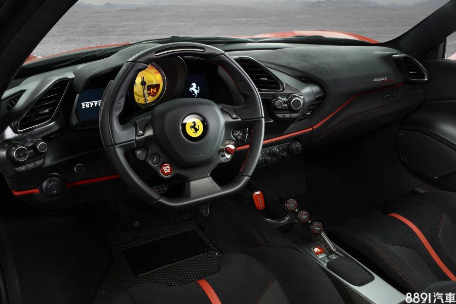 至於在內裝部分,有別於一般款車型,488 Pista在中控台以及座椅部分大量的採用黑色麂皮,再加上貫穿車室的鮮紅色飾條與車縫線,使得整體的熱血指數更獲提升。