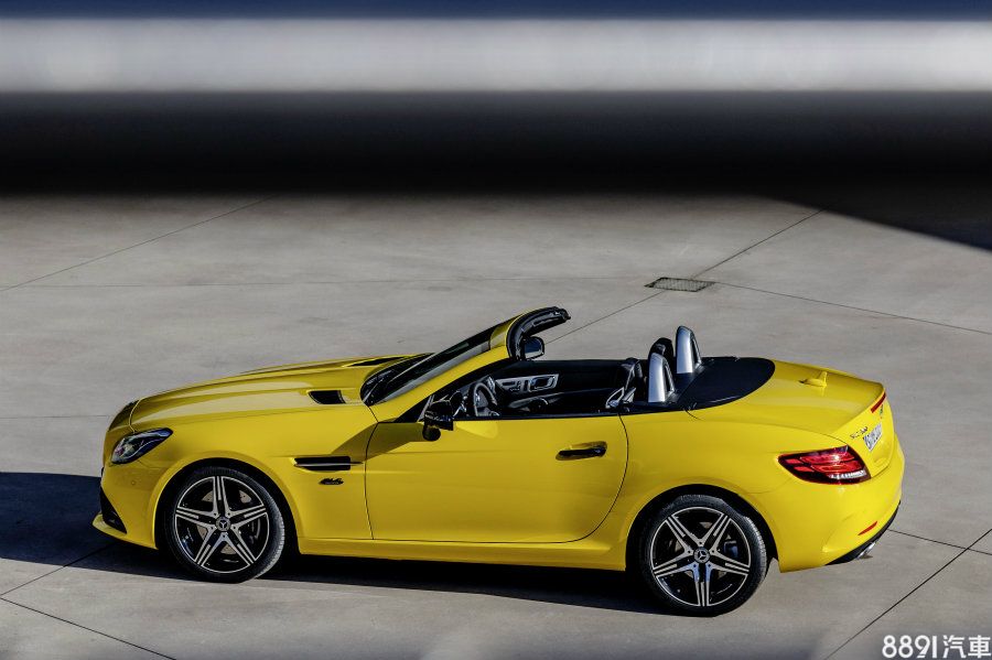 特別版擁有AMG Line外觀套件,包含更富動感的前後保桿與運動化懸吊,其中後者可降低車高10mm,操控性自然更好一些,另外,雖然車側均鑲有專屬徽飾,但為營造車型差異,原廠仍賦予不同塗裝,其中AMG SLC 43比照初代SLK處理,外觀採用「Sun Yellow」塗裝,其它車型雖無經典配色,但原廠亦有提供標準黑、曜石黑以及銀灰等車色供選擇。