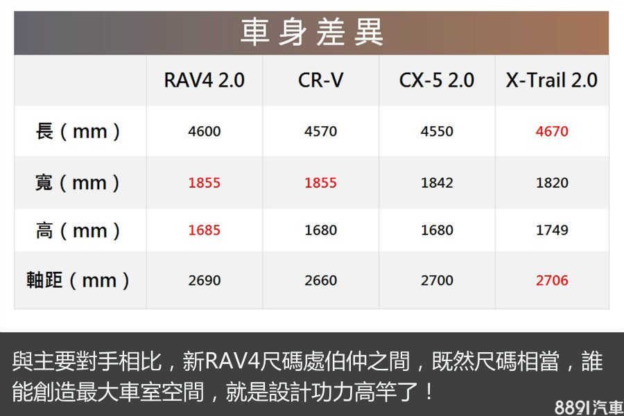 無論是外觀或內裝,不管是看起來或摸起來,你可以很輕易的感受到,大改款RAV4截然蛻變,初步接觸,你不容易挑出明顯缺點,細細回味,好像缺乏一點創新,對比之下,CR-V、CX-5還是比較有自己的態度。