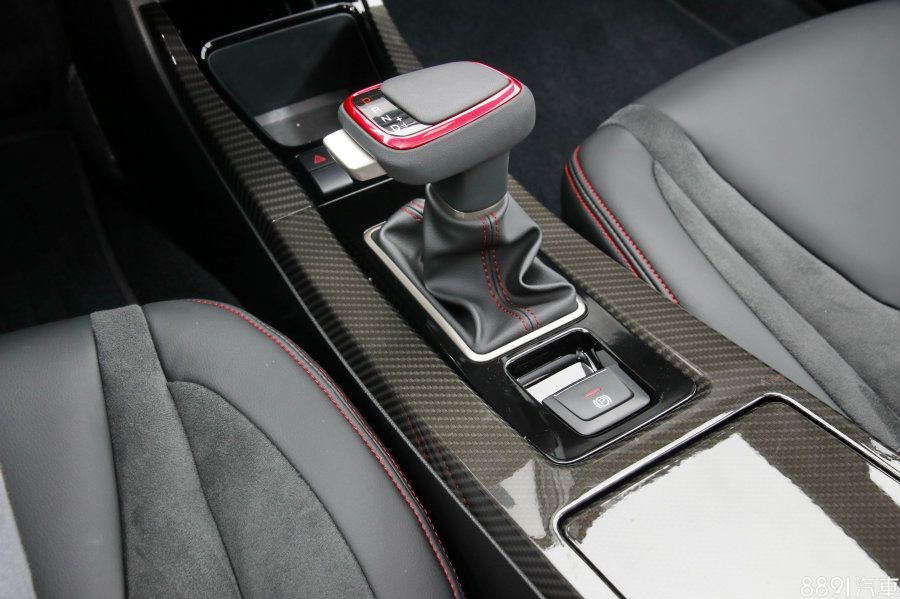 整個排檔座周圍,還有電動窗按鍵處,都鋪設了碳纖維飾板,雖然並非真實碳纖維,但紋路還算是逼真,視覺感頗為出色。
