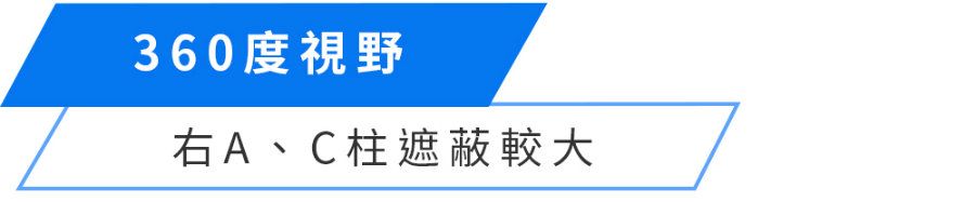 右側C柱遮蔽角度之所以偏大,有一部分原因是大體積頭枕,影響了視線,至於左側,雖然頭枕一樣大,但從駕駛座望去,與C柱明顯重疊,因此自然較不會造成明顯遮蔽。