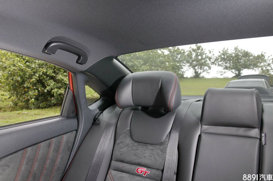 座椅、門飾板加入大量類麂皮材質、紅色縫線,這確實是作為性能車的內裝標準扮相,但一些細節可以處理更精緻一點,像是椅背GT字樣刺繡就略顯粗糙。