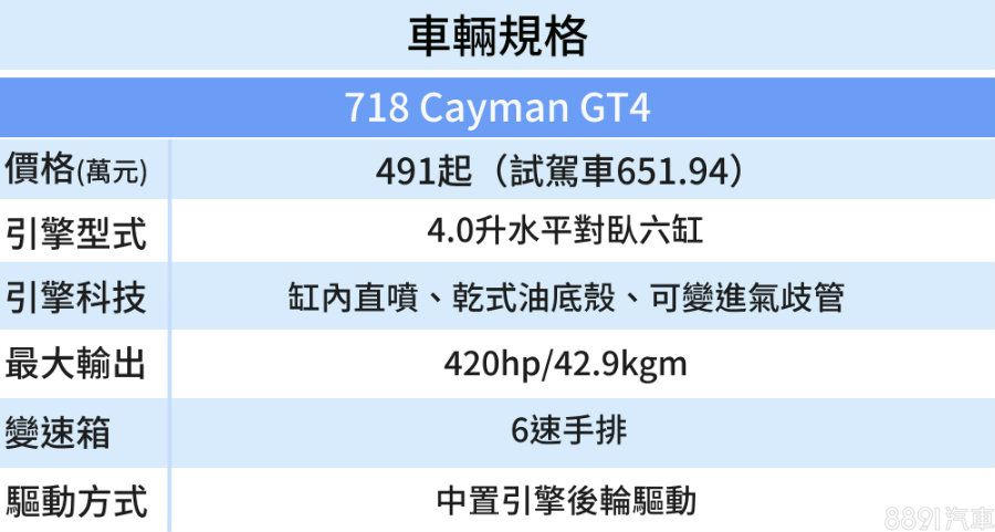 718 Cayman車系有很多版本,GT4是其中一款,國內售價491萬起,而試乘車選配了不少高價配備,車價突破650萬,聽起來很貴,但其實還未到911 Carrera S的676萬起跳價,猜想之後992 GT3台灣售價可能達900萬門檻,由此可見,718與911市場定位壁壘分明!