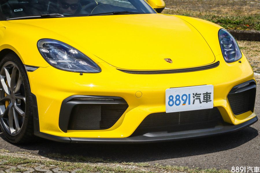 GT4車高較一般款降低30mm,而前下擾流除了低,也明顯向前端延伸,而GT4無提供車頭抬舉功能,因此進出地下室時,需要特別注意一下。下擾流造型延伸到保桿側邊,這樣的設計與911 GT3類似,加深了兩者關聯性印象。
