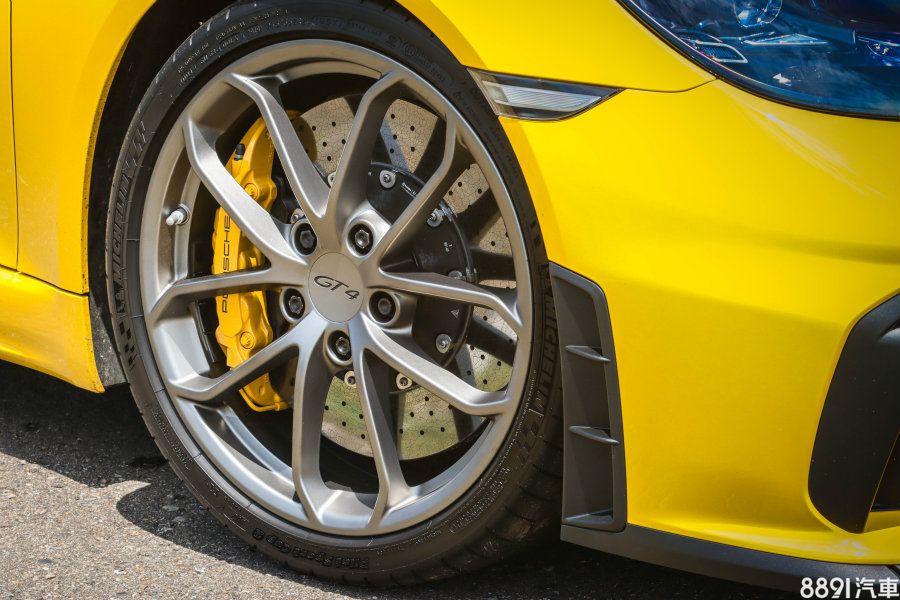 GT4標配的剎車為前6、後4活塞卡鉗,碟盤前後均為380mm,試駕車選配PCCB碳纖維陶瓷剎車加大為前410、後390mm,根據原廠資料,可減輕50%重量,聽起來差異很大,不過選配價要50.38萬。輪胎為前245/35R20、後295/30R20的米其林Pilot Sport Cup2,規格與等級都是無可挑剔。