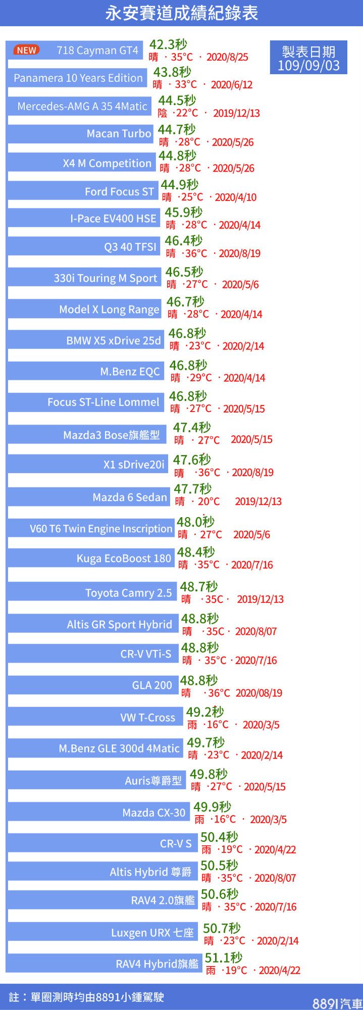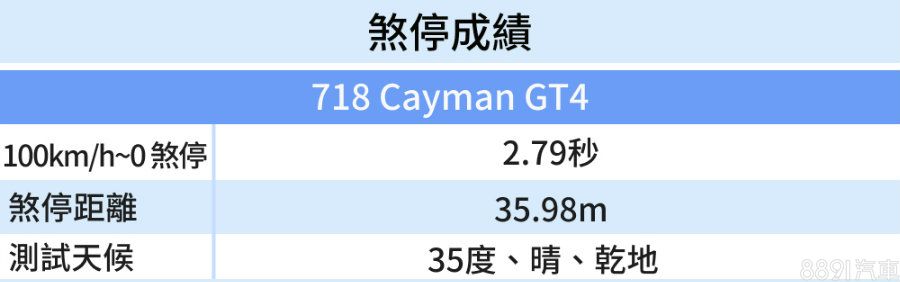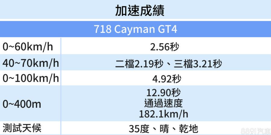 車輛特性使然,相信每個人對於718 Cayman GT4的關注點,都是在到底能跑多快,因此我們就沒針對空間、視野、舒適性等項目進行量測。