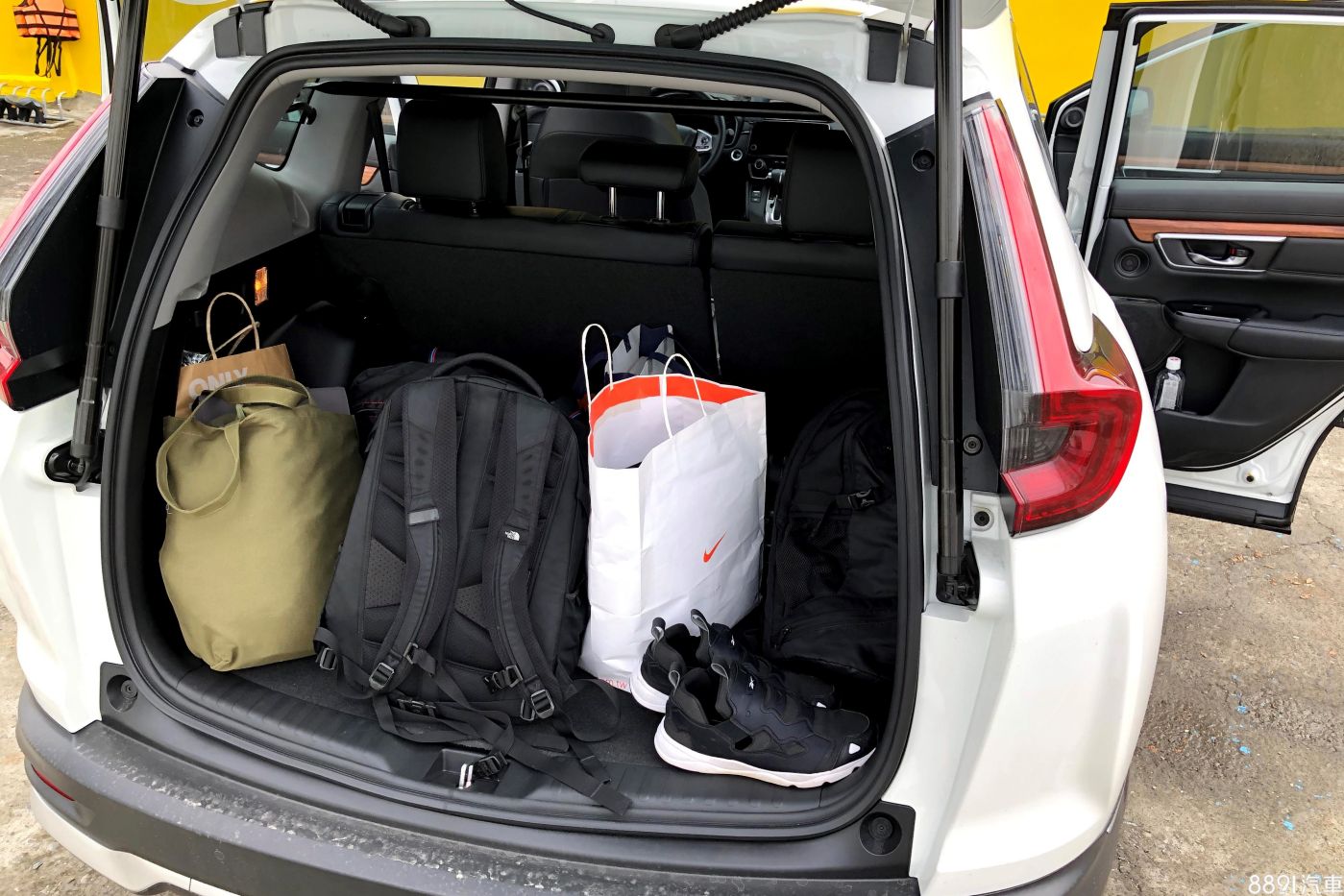 空間的部分CR-V算是比同等級的Kuga還來的大一點,從照片可以看得出來,光是後座未倒平的狀態下,行李廂空間就已經可以應付大多數日常使用範圍,這台的空間還不只如此,行李廂棧板底下還有空間可以做使用,因為沒有配置備胎才會多出那麼多空間,平常我在台南也是會開這台車代步,也常常開去大賣場購物,真心覺得這台車空間真的很大,後座椅背還能6/4分離,在我平常的生活中載物載人就已經很夠用了。