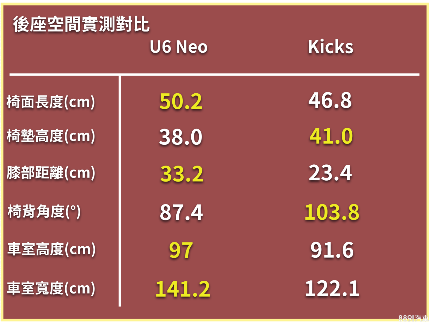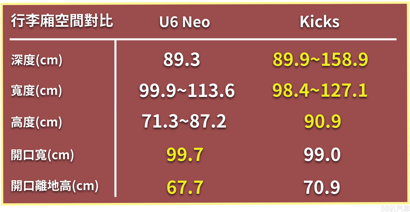 U6 Neo乘坐空間好 Kicks後廂表現佳