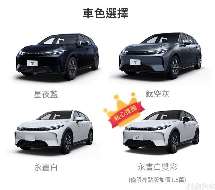 納智捷n7頂著首輛國產、又是最便宜電動乘用車的名號,加上品牌討論度高、定位又是目前最火的中型休旅,使其開始接單至今,話題不斷,且接單破萬張的好成績,甚至有機會挑戰台灣電車王的地位!新車終於在最近開始交車,相信還在觀望的人不在少數,就讓8891汽車告訴你,到底哪一款才是C/P值之選?