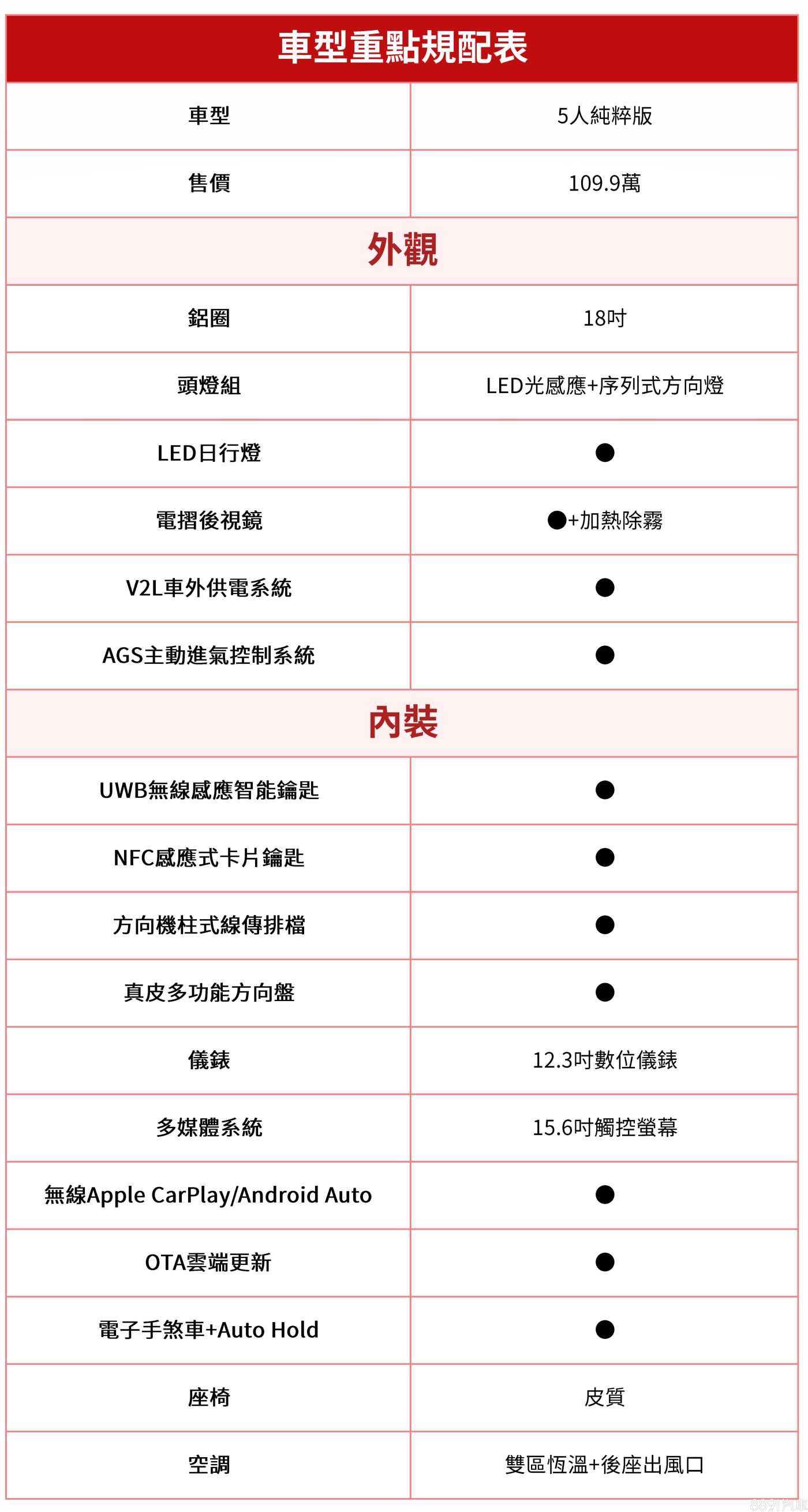 百萬出頭的n7純粹版,對比同級油車,配備已屬完整,像是Level 2駕駛輔助、7氣囊、12.3吋數位儀錶、15.6吋多媒體系統、LED頭尾燈、雙區恆溫、感應式卡片式鑰匙、OTA更新功能通通給你,就連國內最暢銷的Tesla目前也尚未提供的V2L外接供電系統,n7也都列為標配,要露營、車宿都很實用,配備毫不陽春,如果預算有限,其實入門款就能滿足多數人需求。