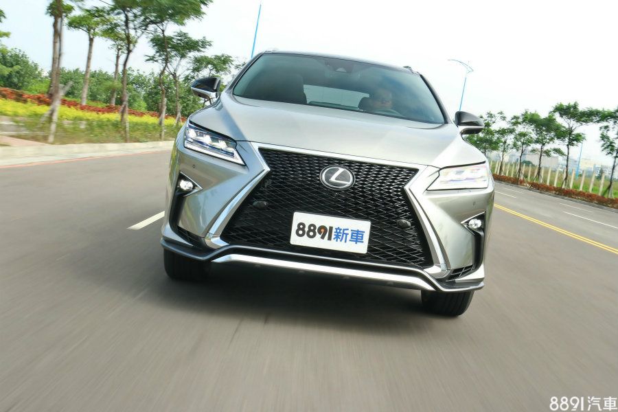 新年式RX車系編成,共有三款動力可選,總共10款車型,此次試駕的RX200t F Sport版,外型架式十足,彰顯家族特徵的紡錘型水箱護罩展現出更前衛的樣貌,以頭燈水平線切割出上薄下厚的視覺對比效果,紡錘型線條自頂點向後收折並由引擎蓋延伸至整個車身,刻畫出強勁銳利的正面視覺。而F Sopot版在水箱護罩另有別種不同風格設計,採用網格狀菱形水箱護罩,比起一般版本橫條式設計,Sport版看起來更加動感。此外,燈組大量採用LED光源,包含頭燈、日行燈、前後霧燈、尾燈與剎車燈等,而在200t車型的Sport版與旗艦版,前後方向燈採序列式閃爍,依序循環亮起時清晰明確地指示車輛轉向,視覺效果與辨識性同樣出色。從車頭一路至車尾,包含葉子板、側裙處等,都使用複雜的摺線設計,勾搭出更具立體的視覺美學,加上也是Sport版才具有的網狀後下擾流空力套件,車尾帥氣度依舊不減。