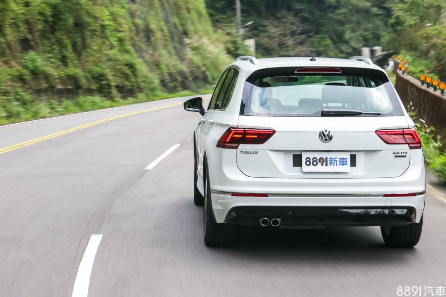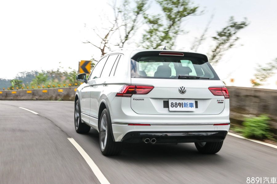R-Line與其他版本相比,配備基本差異不大,主要在於外觀風格的差異,換上更厚實的前下巴造型,並在下方左右兩側進氣口與霧燈等處加上亮黑色烤漆外框,配上LED頭燈與日行燈組,視覺變化度更為豐富,質感也相當出色,而後方尾燈採用燻黑式樣,內部並有3D立體煞車燈條,後下擾流也採用黑色鋼琴烤漆處理,若要各別形容,一般版Tiguan給人的感覺較為成熟、洗鍊,R-Line版本帥氣外型正是它的魅力所在。